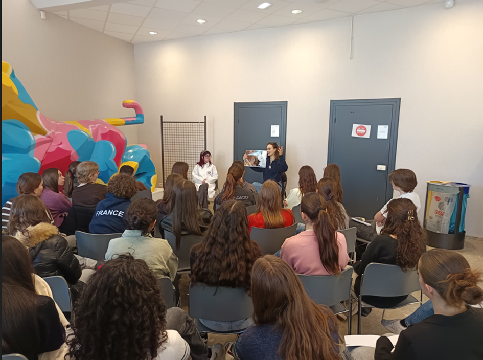 Les participantes ont ensuite échangé avec des marraines — techniciennes, ingénieures, chercheuses, post-doctorantes et doctorantes — venues présenter leur métier ainsi que leur parcours d’études et professionnel. La diversité des parcours présentés, souvent non linéaires et marqués par des réorientations ou des expériences variées, a permis aux élèves de mieux comprendre qu’il n’existe pas un seul chemin pour accéder aux métiers scientifiques. Ces échanges ont permis de susciter des discussions riches et inspirantes.