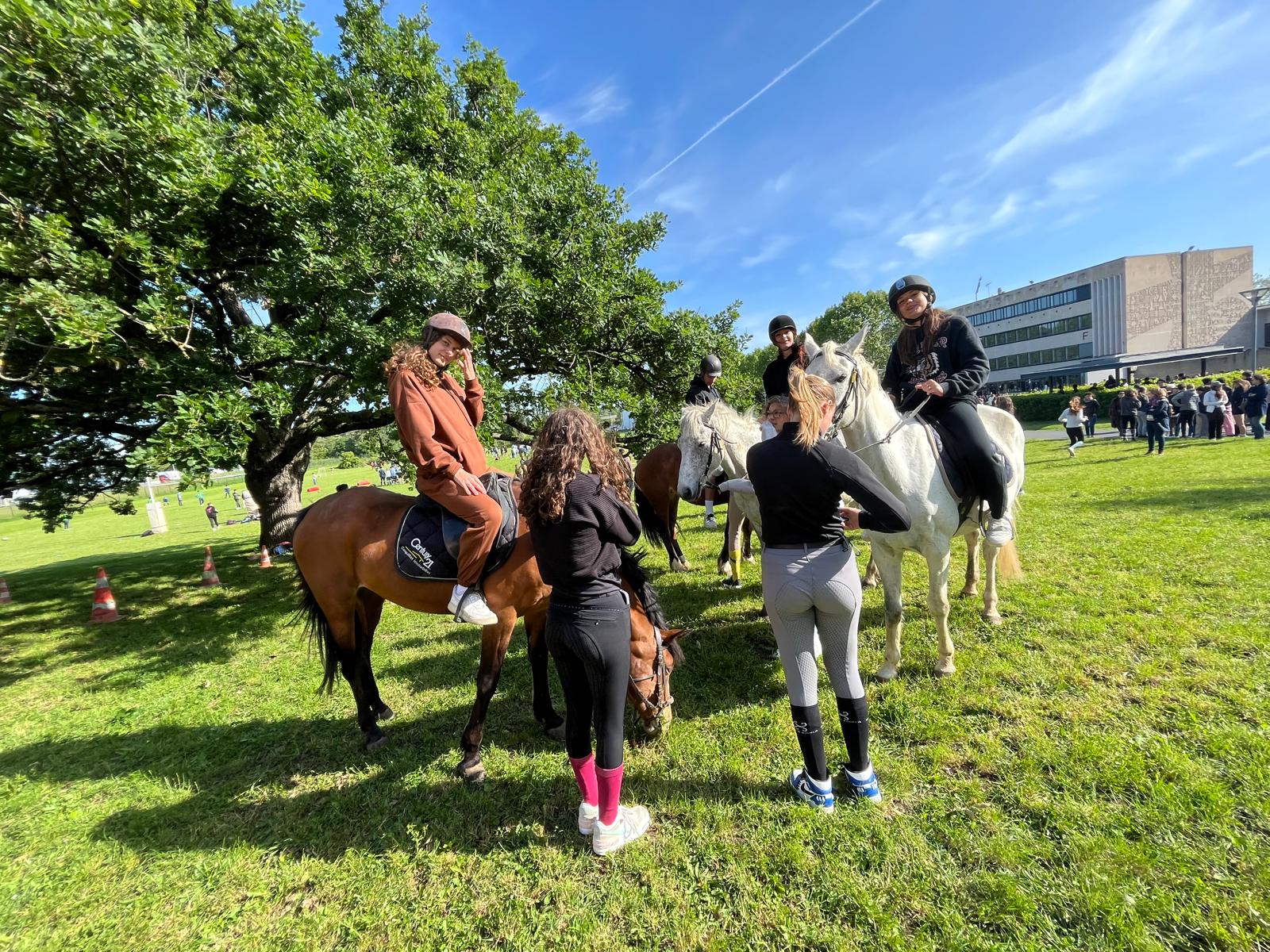 Au-delà des entraînements et des compétitions, le Domaine de la Sauvageonne participe activement à la vie de l’établissement en s’associant à la journée du sport, événement phare du Lycée. Cette présence permet de faire découvrir l’équitation à l’ensemble des élèves, y compris à ceux qui n’auraient pas spontanément accès à ce sport, renforçant ainsi l’ouverture et la curiosité sportive.